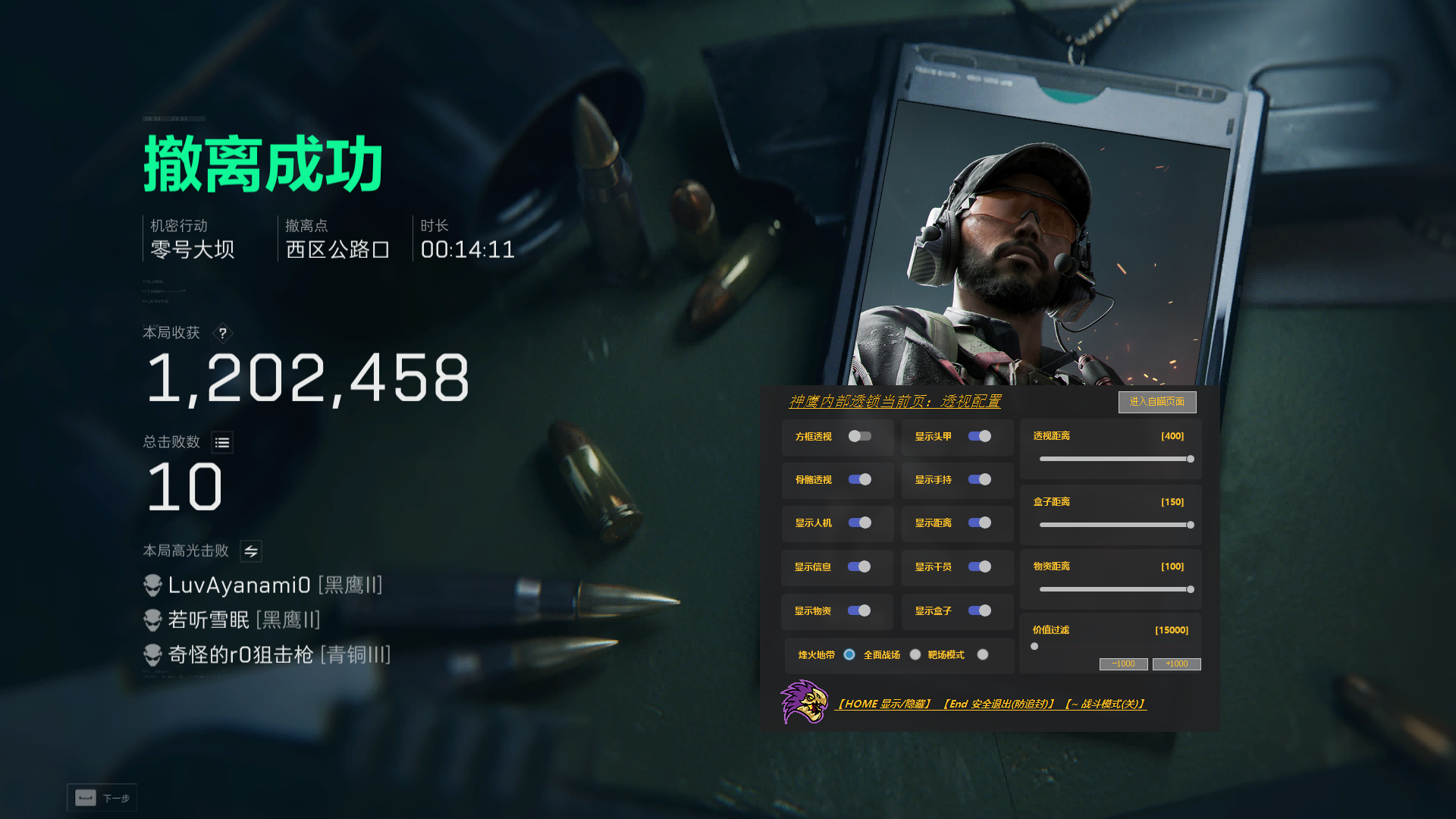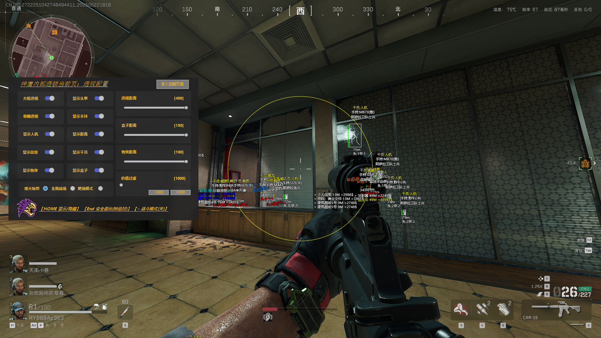 三角洲行动辅助-神鹰透视自瞄物资辅助效果图